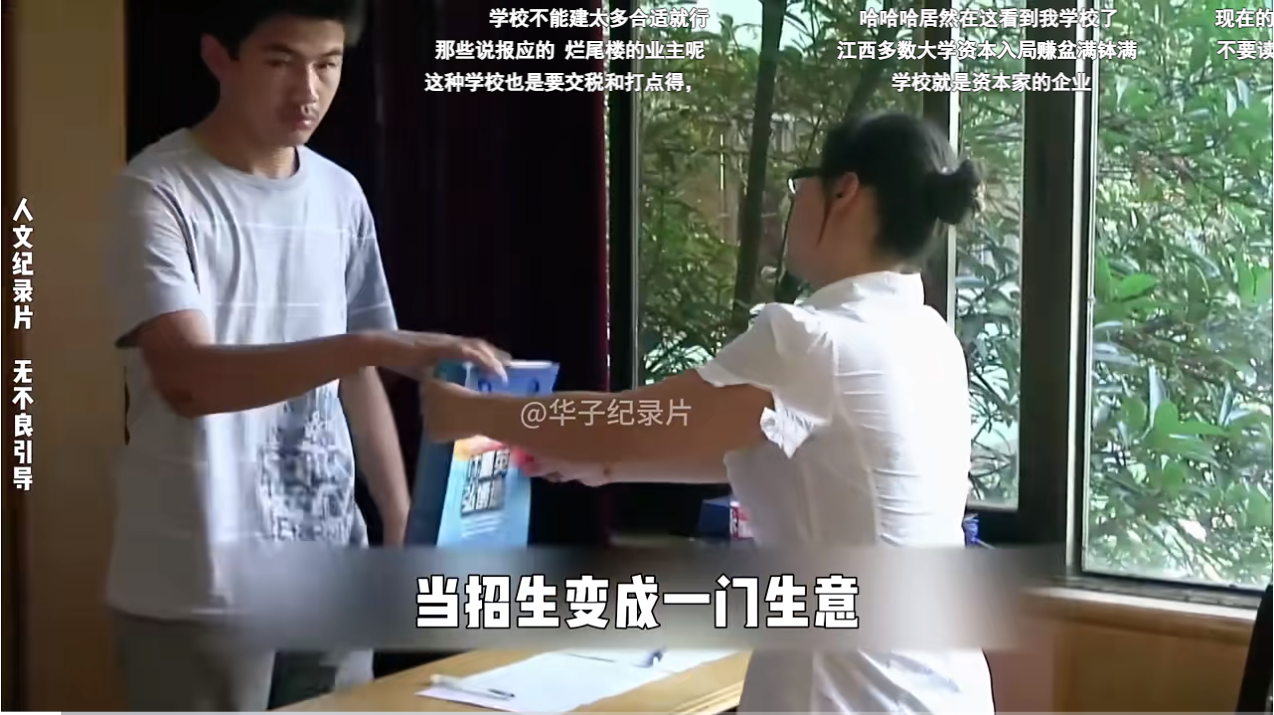 華丞文化旗下視頻號《華子紀錄片》推出的《為什么貧窮》,以“私立大專年入5000萬,專坑農村娃”的赤裸真相,揭開了教育產業化殘酷的一面: